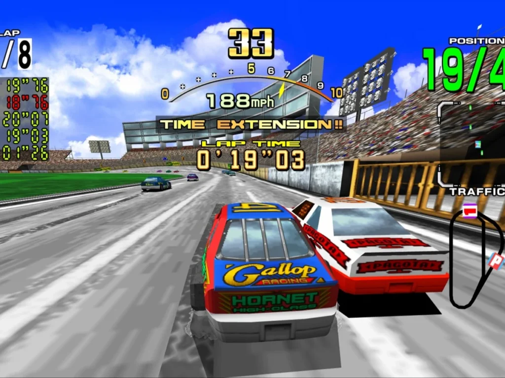 Bleu Sega, dossard 41, V8 qui rugit, et surtout ce speaker qui vous colle la banane. La Hornet est l’avatar parfait de l’arcade Sega : accessible, lisible, nerveuse.