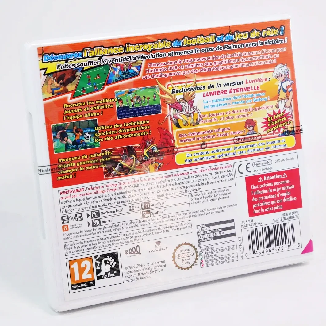 Inazuma Eleven Go : Lumière est la déclinaison 3DS du RPG footballistique imaginé par le studio Level-5. Le soft se décline en deux versions, Inazuma Eleven Go : Lumière et Inazuma Eleven Go : Ombre, la principale différence résidant dans la nature du rival du héros et de son équipe.
