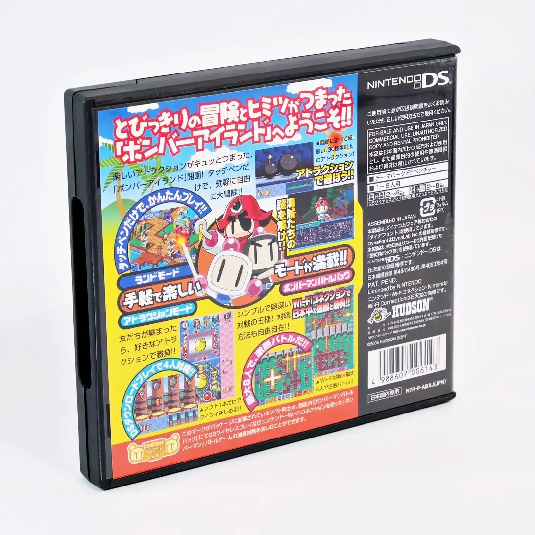 Bomberman Land Touch ! sur DS emmène notre petit héros explosif sur une île où un parc d’attractions sur le thème des pirates prend place. Promenez-vous parmi les visiteurs et les forains et participez à un grand nombre de mini-jeux mettant à contribution votre rapidité, vos réflexes, votre observation et votre stylet. Explosez-vous avec le mode multi qui propose 20 arènes pour 8 joueurs simultanément.