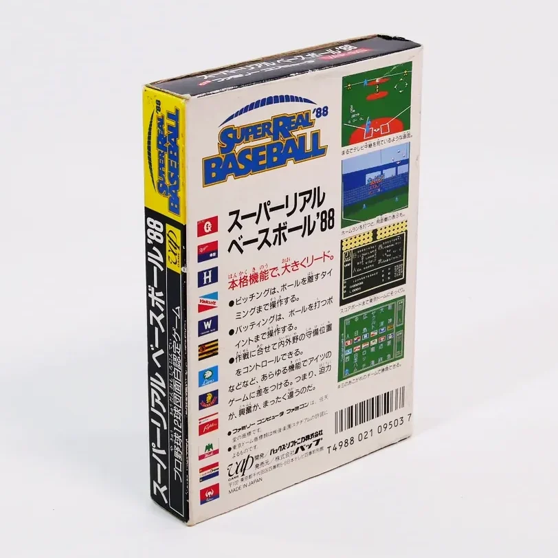Super Real Baseball ’88 est un jeu de baseball développé par Pax Softonica pour la Famicom et publié au Japon par Vap en 1988. Après que Namco ait suscité l’engouement du marché pour les jeux de baseball avec la sortie de Pro Yakyuu Family Stadium, de nombreuses autres sociétés ont tenté de répondre à la demande croissante en jeux de baseball.