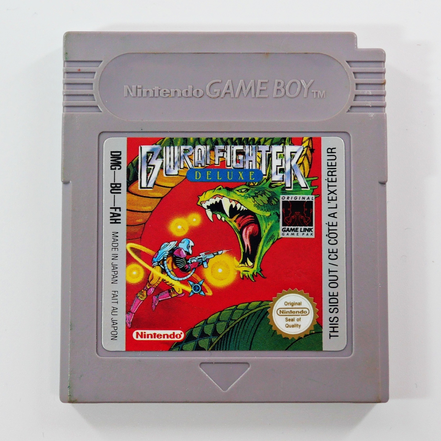 Dans Burai Fighter Deluxe, un jeu d’action sur Game Boy vous incarnez le Burai Fighter qui a pour mission d’empêcher une race d’alien maléfique super intelligent nommé Burai de conquérir l’univers avec leur armée de robot semi-organique. Vous aurez accès pour cela à diverses armes comme un laser, des missiles, un anneau ou la surpuissante bombe au cobalt qui élimine tout ce qui se trouve à l’écran.
