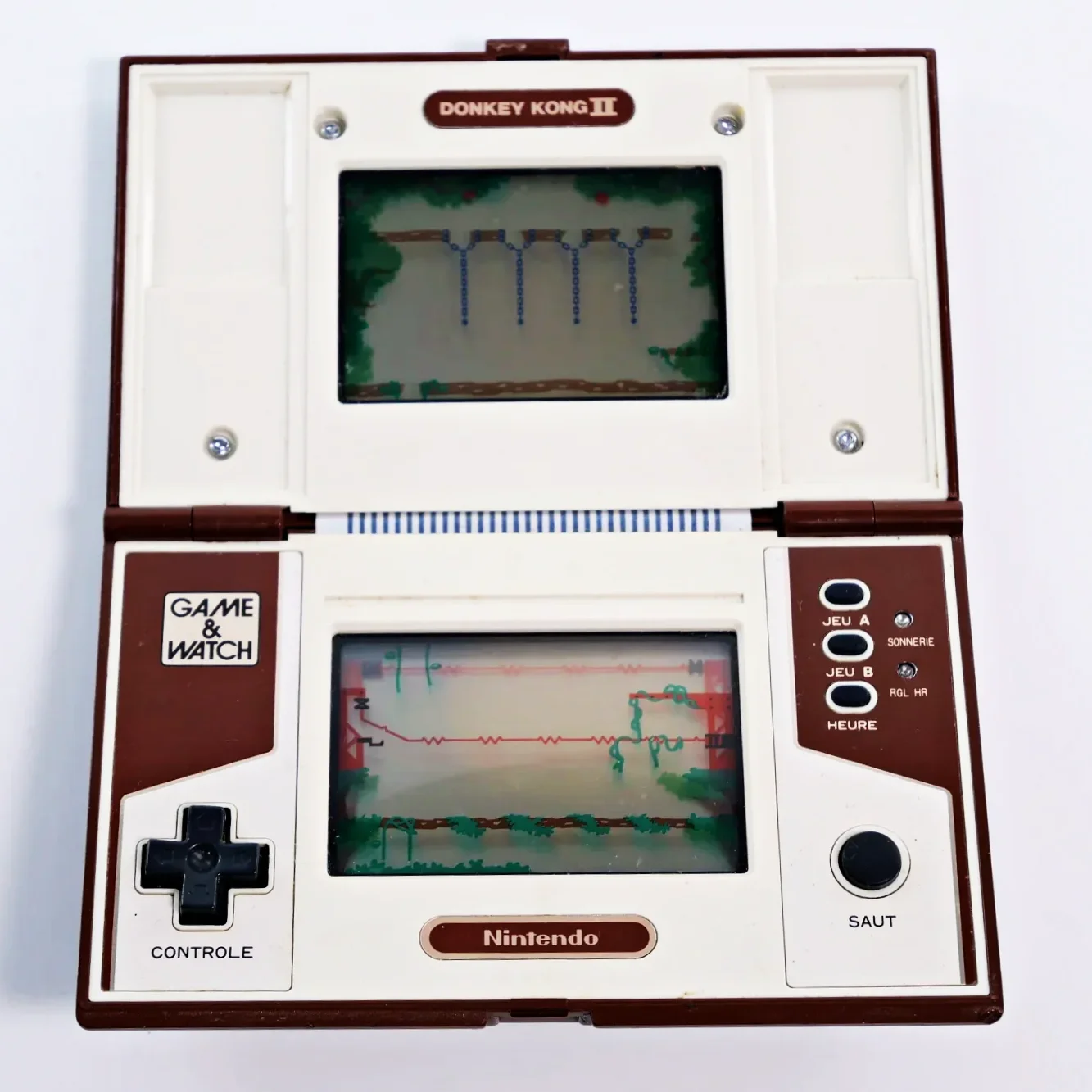 Donkey Kong II est un jeu électronique à cristaux liquides de plate-forme, le cinquième modèle de la série multiscreen sorti en format Game & Watch en 1983 et développé par Nintendo R&D1. Il s’agit d’une adaptation de Donkey Kong Jr. Le gameplay est beaucoup plus riche que le premier épisode. Les décors sont également plus colorés et la mise en scène plus travaillée. Il s’est vendu à plus d’un million d’exemplaires dans le monde entier.