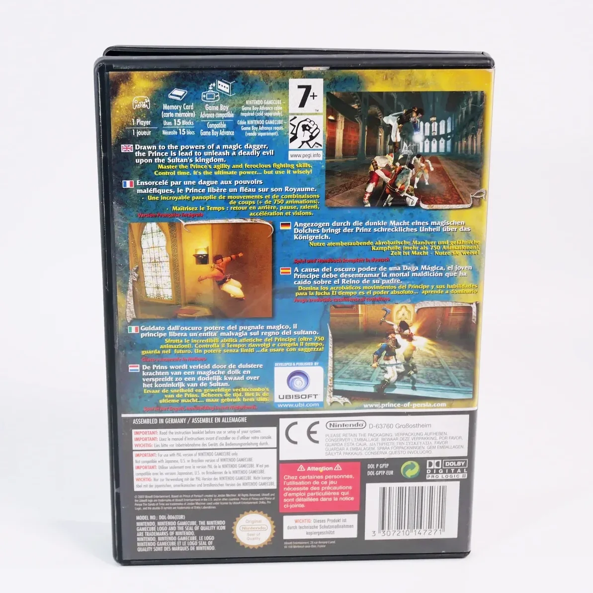 Prince of Persia : Les Sables du Temps est un jeu de plates-formes/action sur GameCube. Vous incarnez à nouveau le jeune prince qui commet l’erreur d’ouvrir un sablier maléfique condamnant immédiatement les âmes des habitants du palais. Le diabolique Vizir est encore une fois derrière tout ça, et c’est en arpentant le palais secondé par Farah que le joueur devra mettre un terme à la malédiction.