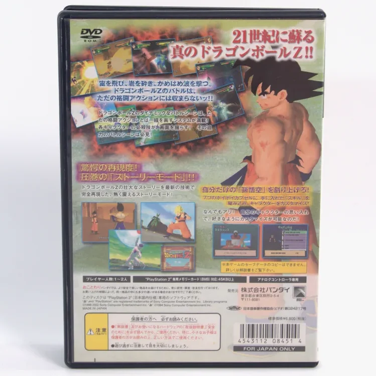 Dragon Ball Z : Budokai (Dragon Ball Z au Japon) sur PS2 est un jeu de combat vous plongeant dans l’univers des Sayiens. A travers le mode histoire, revivez la saga des Nameks et celle des cyborgs. Affrontez un ami en mode duel et affûtez vos techniques respectives. Choisissez l’un des 21 personnages disponibles pour vous disputer le titre de champion !