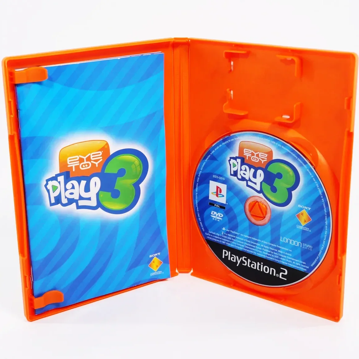 EyeToy: Play 3 est un jeu vidéo compilation de mini-jeux développé par London Studio et publié par Sony Computer Entertainment pour la PlayStation 2 en 2005. Il s’agit du troisième jeu de la série EyeToy: Play et de la suite de EyeToy: Play 2. Contrairement à ses prédécesseurs, il n’est pas sorti en dehors des régions PAL. La caméra prend des clichés pendant le jeu pour votre joueur et est indispensable pour jouer. Contrairement aux précédents jeux EyeToy: Play, Play 3 n’est pas sorti en Amérique du Nord. Contrairement aux jeux précédents, 4 joueurs pouvaient jouer à l’écran en même temps, au lieu de jouer à tour de rôle comme dans les jeux précédents.
