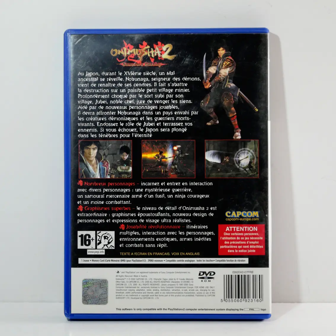 Onimusha 2 : Samurai’s Destiny est un jeu d’action sur PlayStation 2. Le seigneur des démons vient de renaître de ses cendres, il fait s’abattre la destruction sur un paisible petit village minier. Le chef du village décide donc de se venger il se met en route pour détruire le démoniaque Nobunaga. Endossez le rôle de Jubei et terrassez vos ennemis. Si vous échouez, le japon sera plongé dans les ténèbres pour l’éternité.
