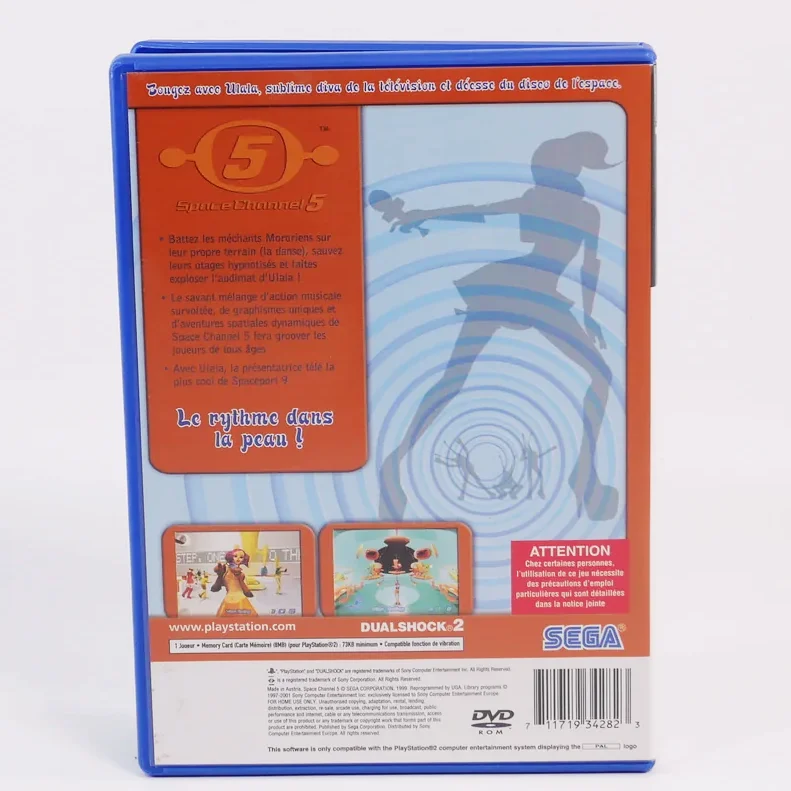 Space Channel 5 est un jeu vidéo de rythme développé par United Game Artists et édité par Sega sur Dreamcast en 1999. Le jeu est porté sur PlayStation 2 en 2002, puis adapté sur Game Boy Advance par Art Co. en 2003 sous l’appellation Space Channel 5: Ulala’s Cosmic Attack. Le joueur incarne Ulala, une jeune reporter pour la chaîne de télévision spatiale Space Channel 5. Le but du jeu est de sauver des êtres humains d’une invasion extra-terrestre en dansant et en chantant.