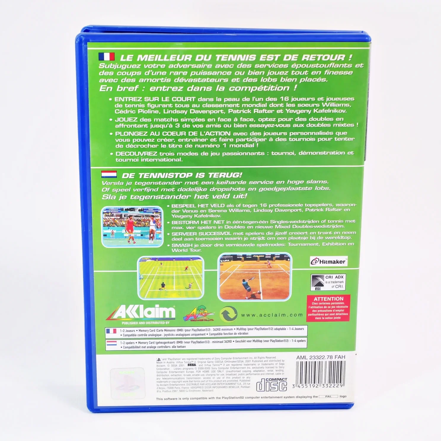 Virtua Tennis 2 est un jeu vidéo de tennis développé par Hitmaker et édité par Sega en 2001 sur borne d’arcade et Dreamcast. Il a été adapté en 2002 sur PlayStation 2. C’est la suite de Virtua Tennis.