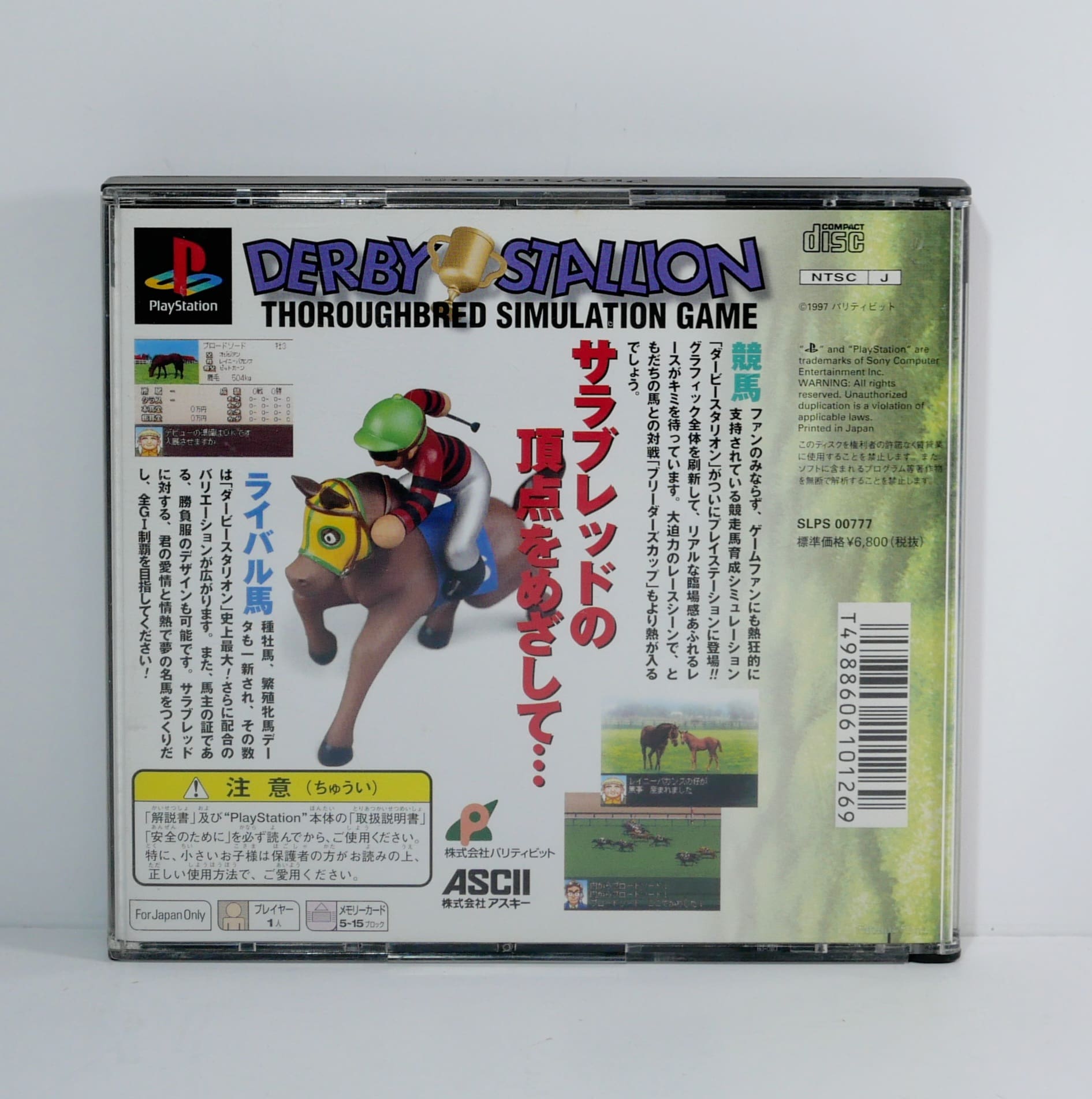 Derby Stallion est un jeu de simulation complexe d’élevage de chevaux qui nécessite de solides connaissances en japonais. Il a été créé pour la Super Famicom et n’est jamais sorti en Amérique du Nord ou en Europe. Dans ce jeu, le joueur doit élever des chevaux qui peuvent être entraînés pour devenir des champions de course de chevaux pur-sang. Cependant, le joueur commence avec une quantité limitée d’argent et doit vendre les chevaux à profit une fois qu’ils sont trop vieux pour faire des courses.