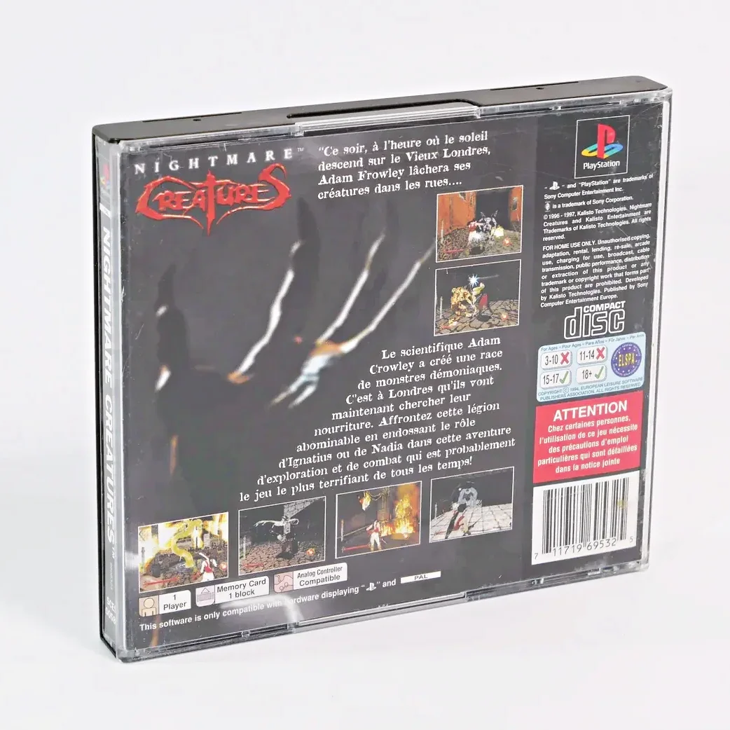 Nightmare Creatures est un jeu vidéo de type beat’em up à composante horrifique sorti en 1997 sur PC, Nintendo 64 et PlayStation. Le jeu a été développé par Kalisto Entertainment et édité par Sony Computer Entertainment et Activision.