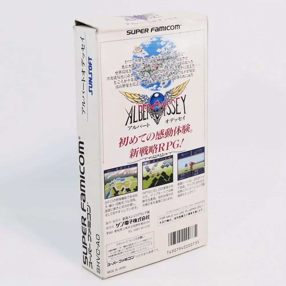 Albert Odyssey est un jeu vidéo de rôle tactique développé et publié par Sunsoft, sorti sur Super Nintendo Entertainment System au Japon en mars 1993. Le jeu propose des combats stratégiques en plus des éléments traditionnels des jeux de rôle dans des environnements en deux dimensions. Il s’agit du premier jeu de la série Albert Odyssey, suivi de deux suites, Albert Odyssey 2: Jashin no Taidou en 1994 et Albert Odyssey: Legend of Eldean en 1996. Albert Odyssey a été mis à disposition en téléchargement complet sur l’extension Satellaview sous le nom de BS Albert Odyssey le 12 juin 1996, et l’Albert Odyssey original a été réédité pour Satellaview en mars 1998.