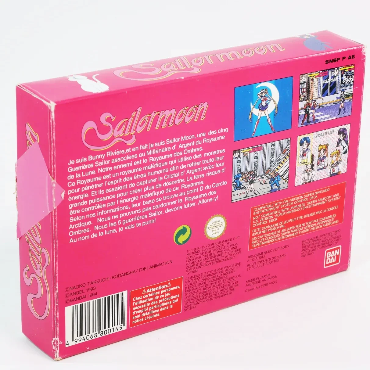 Sailor Moon est un jeu vidéo de type beat them up développé et édité par Angel au Japon, et édité par Bandai en France. Il est sorti en 1993 sur Super Nintendo et en 1994 sur Mega Drive. C’est le seul jeu vidéo fondé sur la franchise Sailor Moon qui soit sorti en Occident.